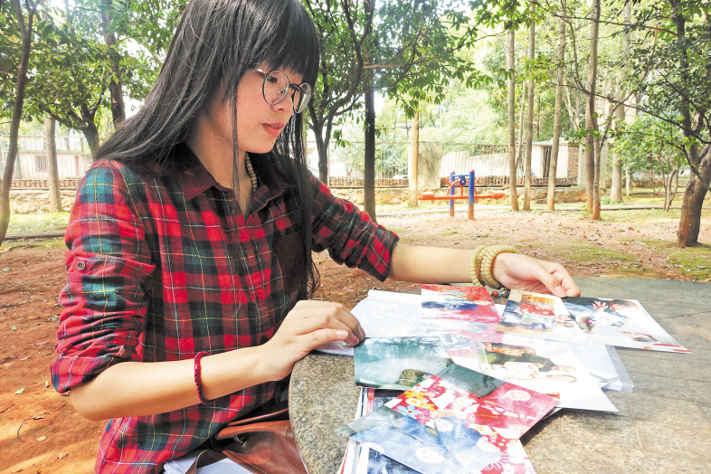 艾哲祺在整理一部分照片。 长沙晚报记者聂映荣 摄
