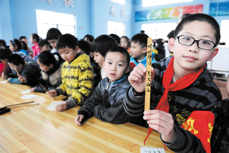 小学生体验书写简牍 感受长沙历史文化底蕴