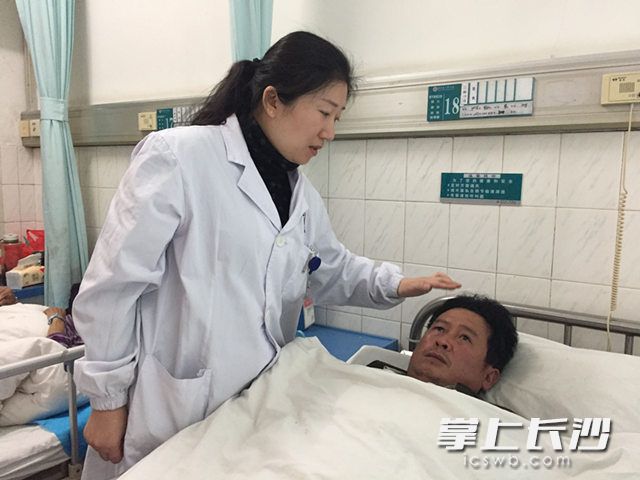 42岁的赵新华(化名)是湖南邵阳新宁县人,在广西桂林一建筑工地做木工。2月17日,由于天雨路滑,他在工地不慎摔倒,右侧面部着地,当即右耳流血、面部肿胀。在当地诊所打了4天消炎针后症状没有改善,还出现耳鸣、右眼闭不上、眉毛抬不起、嘴角歪斜,就连喝水、吃饭都会漏出来,“人家都说我像个’木头人’。”在家人的建议下,赵新华回到新宁老家,在当地医院做CT检查后确诊为:右侧颞骨骨折、右侧面神经管骨折引起的周围性面瘫。考虑到基层医疗水平有限,经熟人介绍于2月21日来到湖南省人民医院耳鼻咽喉头颈外科肖旭平教授处就诊,住进耳鼻咽喉头颈外科一病室。
