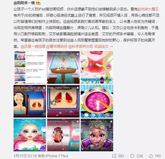 这些“儿童邪典片”在美国引发了一系列的社会事件,被称为:艾莎门(Elsagate,因为《冰雪奇缘》里的艾莎公主是这类视频中最常出现的主角)。