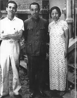 1946年9月16日,周恩来为抗议国民党破坏和平谈判,愤然离开南京到上海。这是他和李维汉(右)、郭沫若在中共代表团驻上海办事处门前合影。