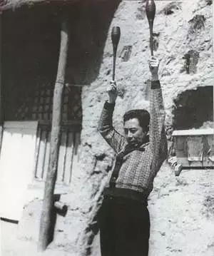 1940年,周恩来归国回到延安后锻炼臂力时的情景。
