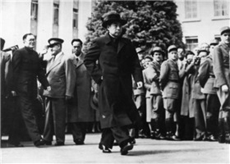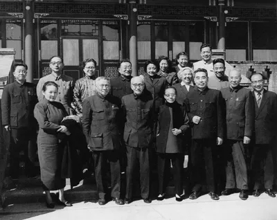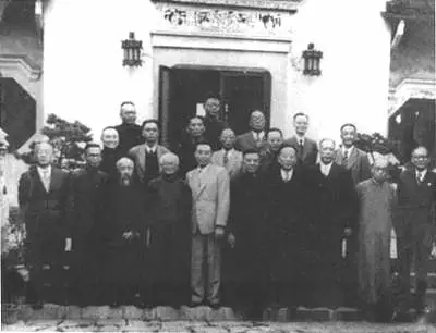1946年10月17日,国共双方代表和第三方面人士在上海吴铁城公馆前合影。前排左五为周恩来。