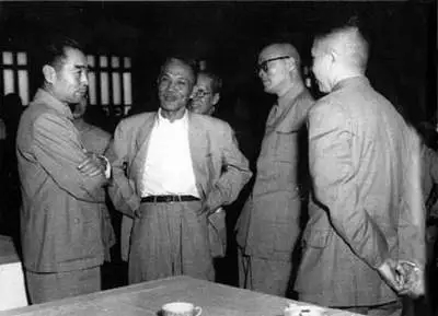 1962年春节前夕,周恩来邀请张治中(左一)、傅作义(左三)、屈武(左四)商谈台湾问题。