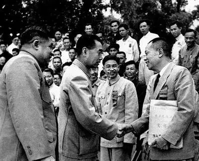 1946年11月19日,周恩来率中共代表团部分成员飞返延安。这是他回延安后和毛泽东、朱德在一起。