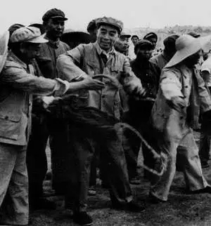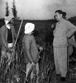 国民经济困难时,周恩来在河北武安县伯延公社向农民了解情况。
