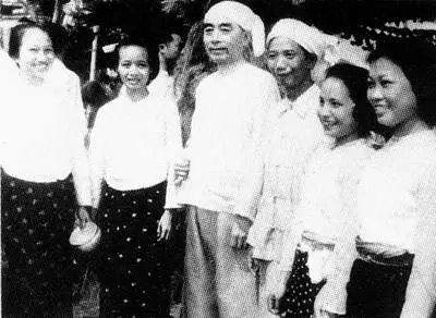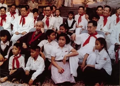 1960年5月,周恩来访问越南时,和胡志明主席同少年儿童在一起。