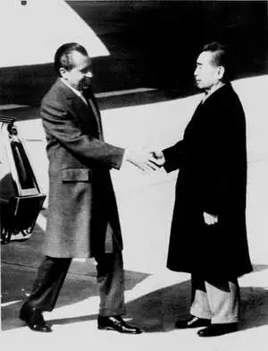 1972年2月,周恩来在机场迎接美国总统尼克松。这是美国有史以来第一位出访未建交国家的总统。
