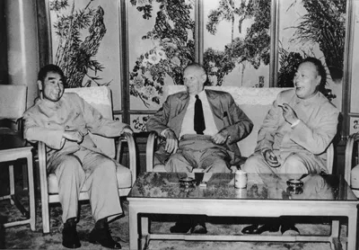 1960年5月,周恩来和陈毅会见英国军事家贝纳德·劳·蒙哥马利元帅。