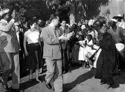1964年1月,周恩来和陈毅访问苏丹时,接受儿童献花。