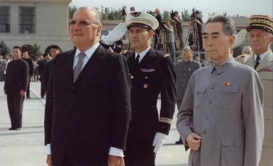 1973年9月,周恩来迎接法国总统乔治·蓬皮杜。