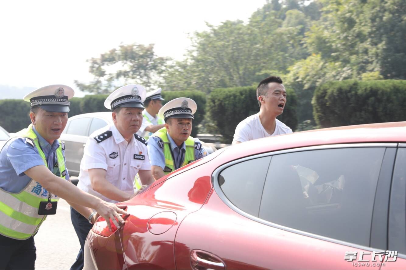 上午10时左右,在长益高速距白箬出口1KM处,两辆小车发生追尾事故,正在沿线督导的蒋建湘一行立即下车进行调度处置。其中1辆小车因碰撞后无法继续行驶,停在超车道上,蒋建湘同志立即指挥民警管制后方来车,并和民警一同将该小车推到前面的应急车道上,5分钟后道路恢复正常通行,有效防止了二次追尾事故,避免大规模车流造成交通拥堵。