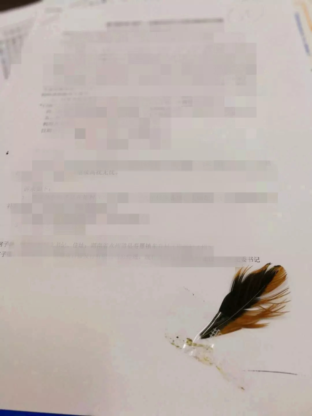 ▲群众的举报信后面,附了一根鸡毛