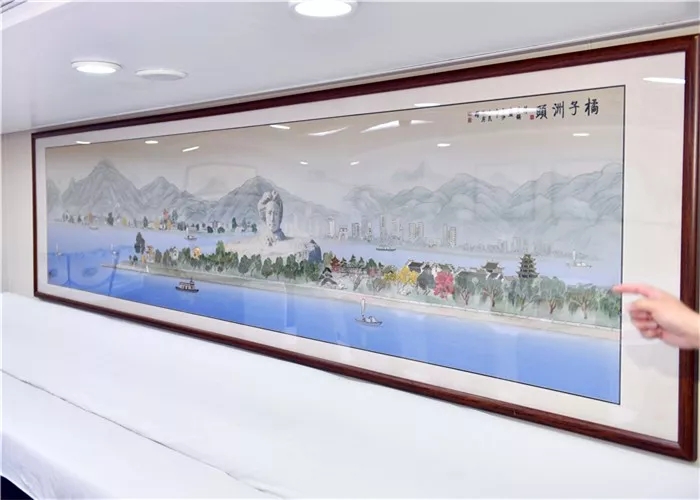 会议室墙上3米长的湘绣《橘子洲头》是属于我的“长沙情结”。谁来做客,第一个推荐它。