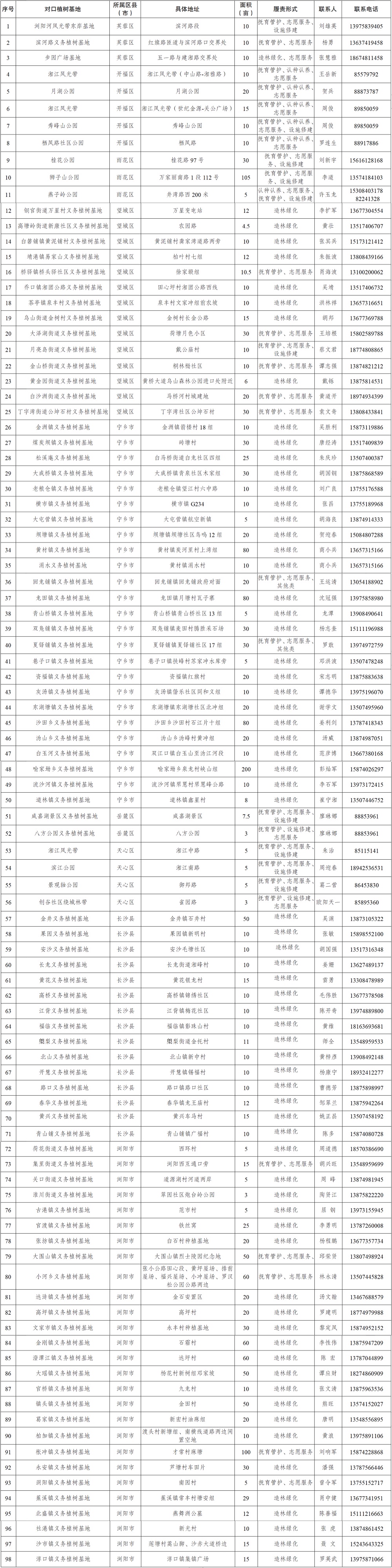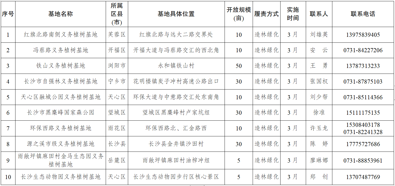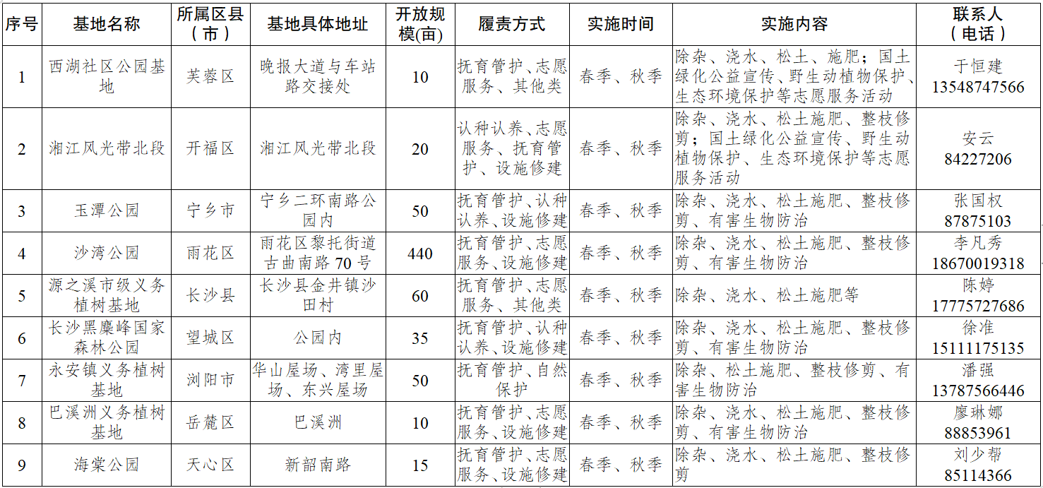 长沙市2021年县(乡)级义务植树基地活动指导性安排表