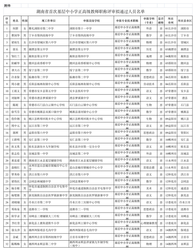 速看!湖南首批32名基层中小学正高级教师职称评审拟通过人员名单出炉