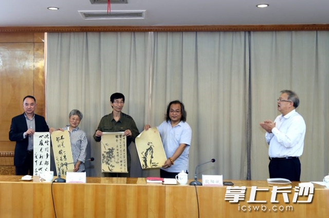 中国现代作家、美术家、原湖南省文联主席魏猛克的家属将其创作的两幅美术作品及两幅书法作品捐赠给湖南省美术馆永久收藏。长沙晚报记者田芳 摄