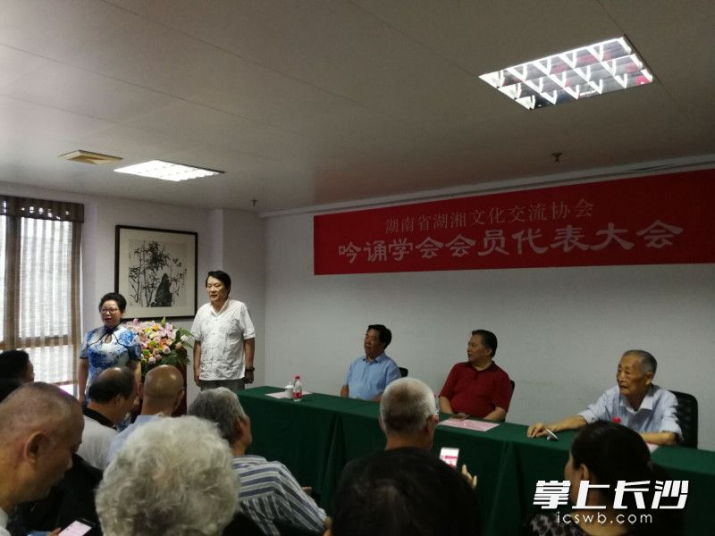 长沙晚报掌上长沙6月28日讯(全媒体记者 胡兆红) 今日上午,湖南省湖湘文化交流协会吟诵学会会员代表大会召开,大会产生了学会新一届理事会,汪涵当选为会长。老同志唐之享出席活动。