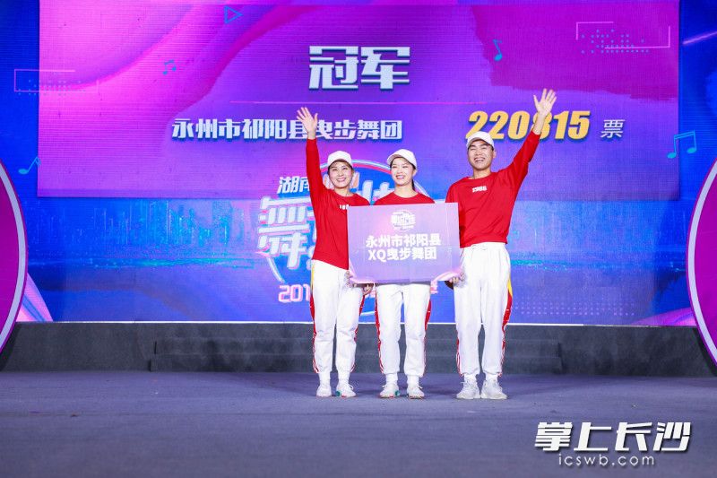 最后,永州市祁阳县曳步舞团获得冠军,娄底市双峰县直属机关队获得亚军,岳阳市平江县美之韵队获得季军,怀化市鹤城区翼起飞扬舞蹈队获得最佳人气奖。