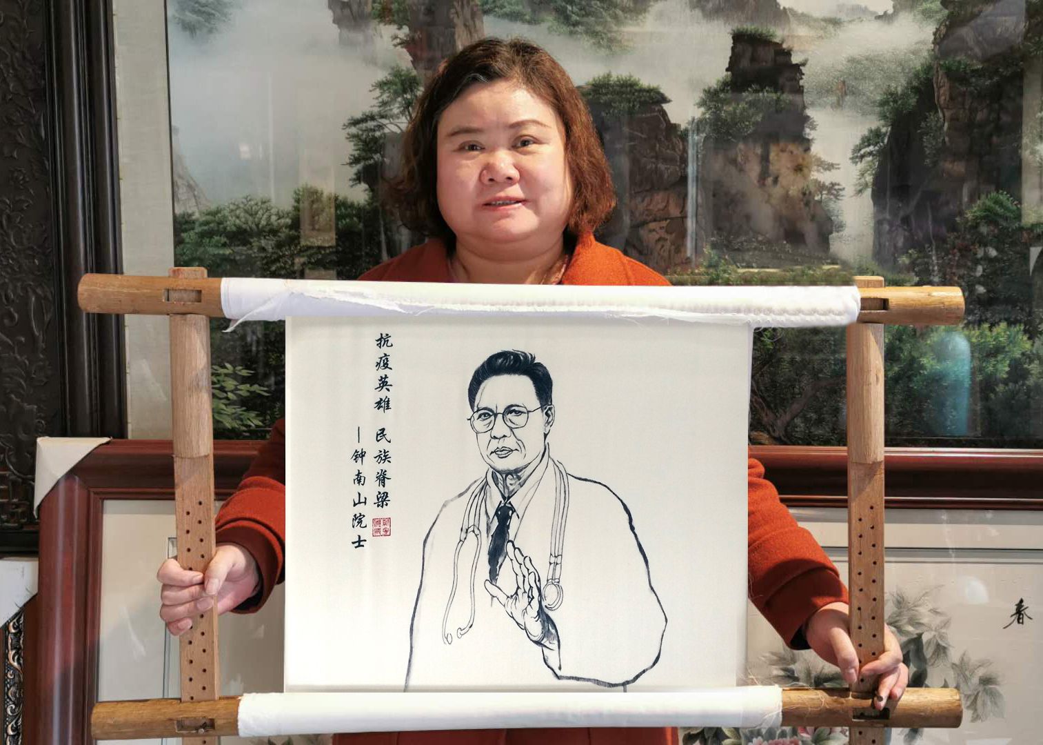 疫情防控,宅在家里,每天看到一批批医护人员前往一线的新闻报道,徐向荣心里很受触动。虽然她的专业并不能让她冲在一线,也不能为医护人员分担些什么,但她很想用自己的方式去表达心中的感恩之情。在无数医护人员的身影中,已经八十多岁却依然冲在一线的钟南山先生尤其让她感动,“为国为民,冲锋在前,堪称民族脊梁,是我们的骄傲和自豪,也是我们的福气。”