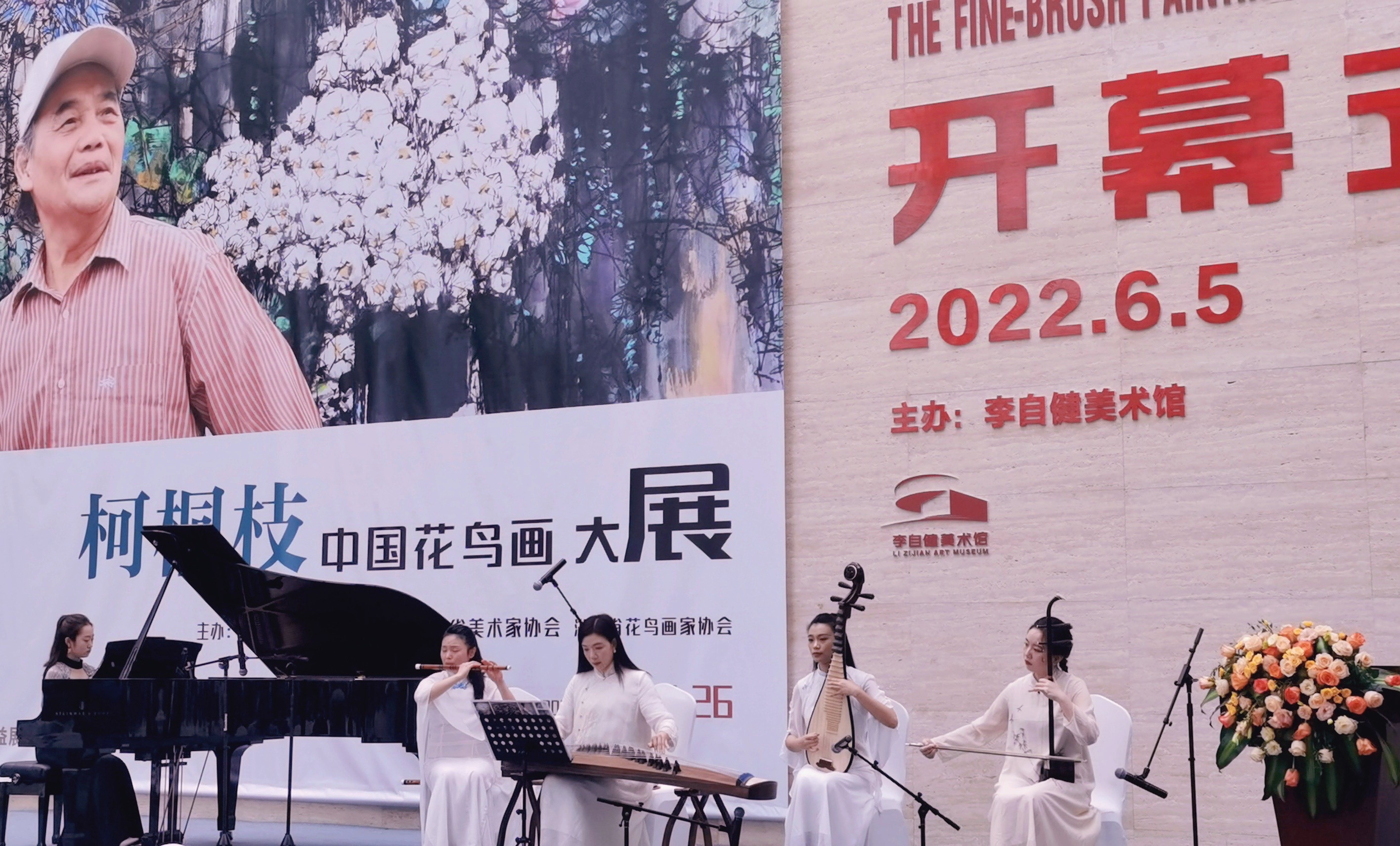 5日,“柯桐枝中国花鸟画大展”在李自健美术馆开幕,湖南民族乐团4位青年演奏员作为特邀嘉宾,在开幕式上以民族音乐的方式为这场国画盛宴增添了浓墨重彩的一笔。国画与国乐的融合,视觉与听觉的碰撞,完美呈现高雅素净、清新唯美的艺术妙境,赋予了新时代文化融合新的活力。