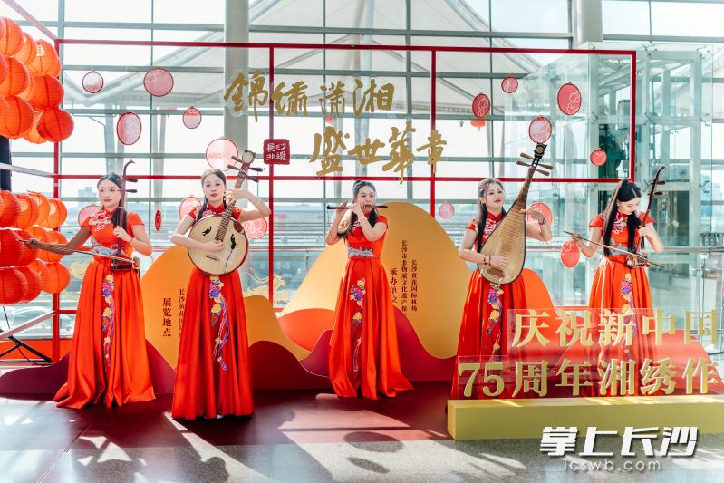 长沙晚报掌上长沙9月29日讯(通讯员 宋林 全媒体记者 郑湘平)29日,由长沙市文旅广电局主办,长沙市非遗保护中心、长沙黄花国际机场承办的“锦绣潇湘 盛世华章——庆祝新中国成立75周年湘绣作品展”在长沙黄花国际机场拉开帷幕。