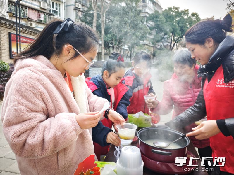 “一碗汤圆瑞气盈,万家灯火照团圆。”在新民学会旧址,上午、下午各进行了一场汤圆派送。中心工作人员将热气腾腾的汤圆递到观众手中,软糯的外皮裹着芝麻馅和花生馅儿的浓香,暖胃更暖心。小朋友捧着碗笑着说:“在这里吃汤圆更好吃更有味!”一颗颗汤圆传递了中国传统节日的温情,让前来新民学会旧址参观的市民品味到舌尖上的“团圆”。