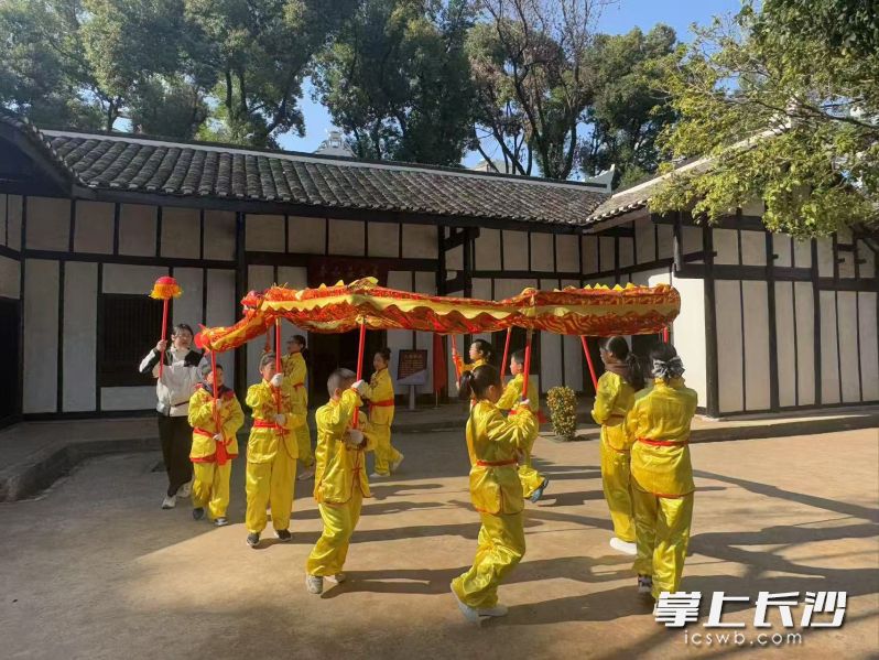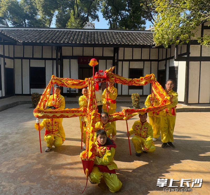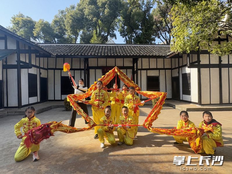 下午2时,金龙舞动庆元宵课程欢腾开场。10名儿童在教育员的指导下,了解舞龙文化的历史渊源,学习舞龙的基础动作。孩子们手握龙具,跟随音乐舞动,举龙、擎龙、端龙,一招一式有板有眼,一起摆出了中国的“中”字和五星红旗的“五角星”造型,在新民学会旧址这一爱国主义教育基地,少年们展现了新一代对于祖国的认识和他们的精气神。新民小学2003班李骏溪同学兴奋地说:“舞龙非常需要集体意识,我们要做到团结协作才能把龙舞得漂亮!”