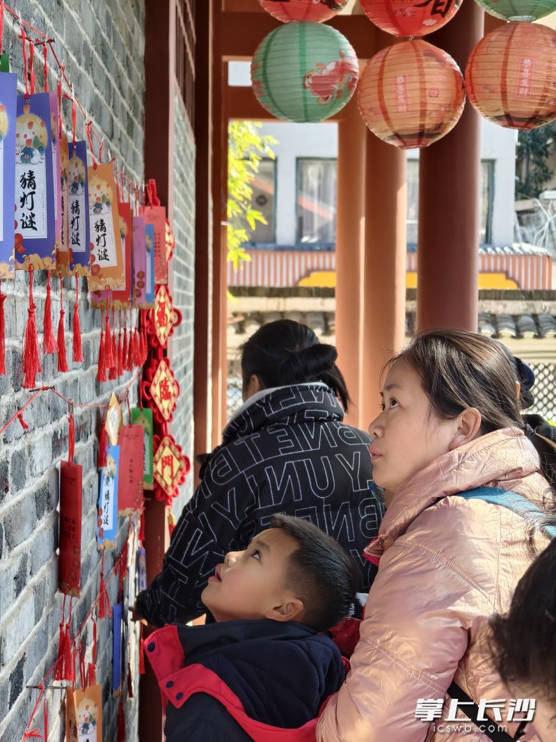 新民学会旧址内,近百盏彩色灯笼在暖阳下随风轻曳,旧址陈列馆走廊上,一个个红绳悬挂的谜题引得观众驻足凝思。从稚童到老者,他们或仰头细读,或交耳探讨,猜中谜底的欢笑声在场馆内此起彼伏。兑奖处排起长龙,参与者凭智慧赢取兑换的精美礼品,更让这份元宵节日的喜悦充溢观众身旁, 观众纷纷满载而归。记者在现场看到,不少孩子跃跃欲试,他们想挑战回答更多的谜题,以赢取奖品。一位家长对记者说:“猜灯谜既考验智慧,又让孩子感受到传统文化的趣味!长沙近现代文保中心举办的这个活动非常好。现在孩子都已作好上学的准备,利用双休提前过上一个元宵,孩子在快乐中成长,非常好。”