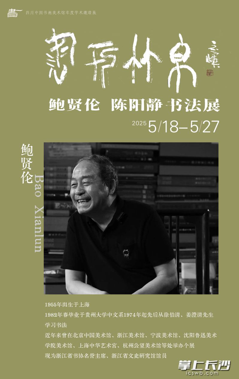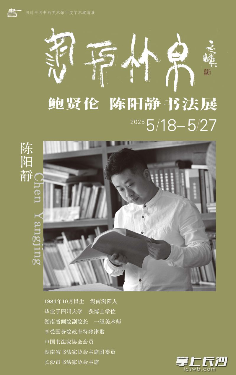 长沙晚报掌上长沙5月9日讯(全媒体记者 肖舞)5月18日,由四川省诗书画院、湖南省画院主办的书于竹帛——鲍贤伦、 陈阳静书法展将在四川中国书画美术馆开幕。