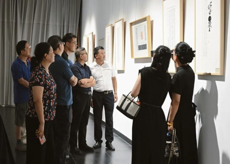 展览现场,一幅幅笔力遒劲的书法作品与一方方精雕细琢的篆刻印作相映成趣,吸引了众多市民与艺术爱好者驻足观赏。这些作品成为传承红色文化、弘扬中华优秀传统文化的生动载体。