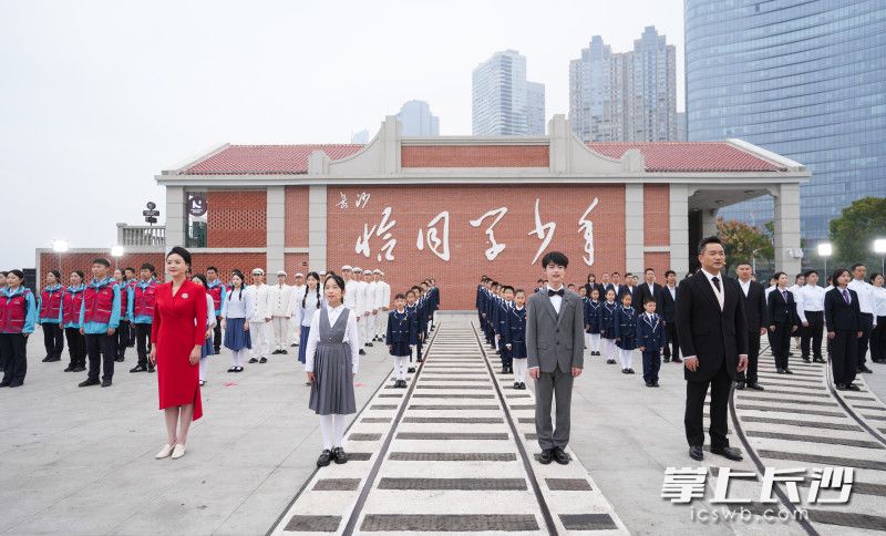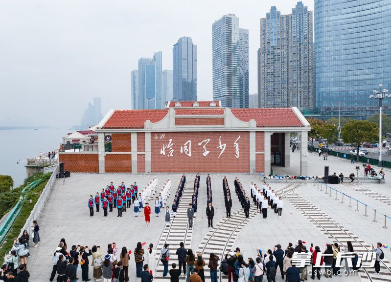 位于河东湘江风光带碧沙湖段的恰同学少年广场,是长沙的新晋网红打卡点,今年1月建成开放。广场临水而立,远眺岳麓山、橘子洲,长沙山水洲城格局的独特魅力尽收眼底,视野极佳,又兼蓝天、碧水、青山、红墙相互交织,色彩明亮和谐,深受市民游客欢迎。此地原为红辣椒广场,因其绝佳的取景效果而被游客自行开发,后来长沙主动加以改造,打造为《沁园春·长沙》文化主题地标,以恰同学少年广场的新面貌与大家见面,在互联网上成为一段长沙宠粉的佳话。这次快闪活动在此举行,也是看中了其地标意义。