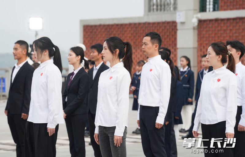 “独立寒秋,湘江北去,橘子洲头。”走出碧沙湖(恰同学少年广场)地铁站,来到广场前,记者远远地就看到了五颜六色的方阵,听到了声情并茂的朗诵。瞧,穿着一袭红色礼服的是来自长沙人艺朗诵团的老师,打扮成100多年前一师学子装扮的是《恰同学少年》青春剧场的演员,着深色正装的是橘子洲景区工作人员,套着红色马甲的是长沙可爱的志愿者,此外还有橘子少年方阵与青年代表方阵。无论大家是否有丰富的朗诵经验、丰富的朗诵技巧,此时此刻,他们都怀抱相同的热血激情相会于此。虽然快闪的持续时间十分短暂,但从整齐的方阵队列到昂扬的精神面貌,从响彻云霄的诵读之声到余音绕梁的情绪传达,都感染了现场的游客情绪。
