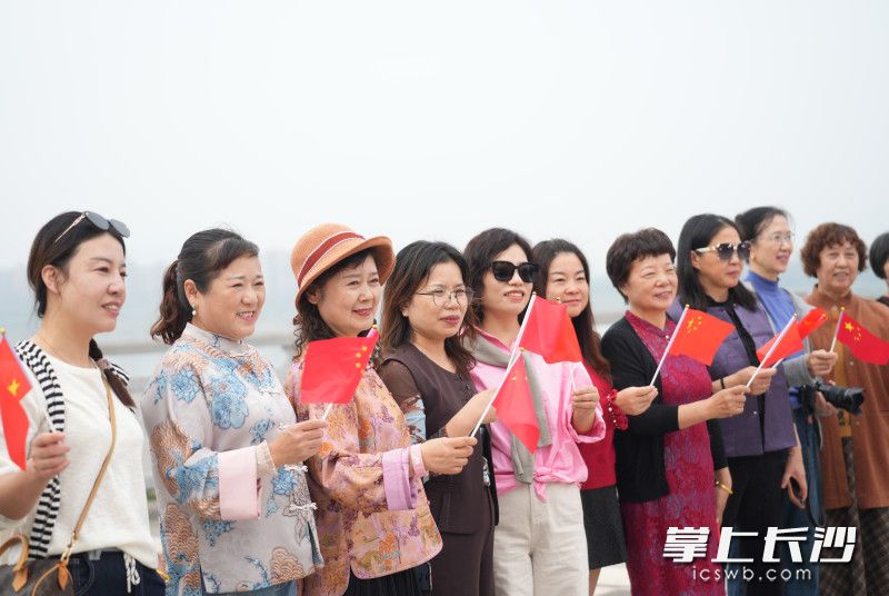 参与快闪的各方阵还分别前往橘子洲头景观石、青春剧场门口、亲水平台、望江亭等地朗诵。