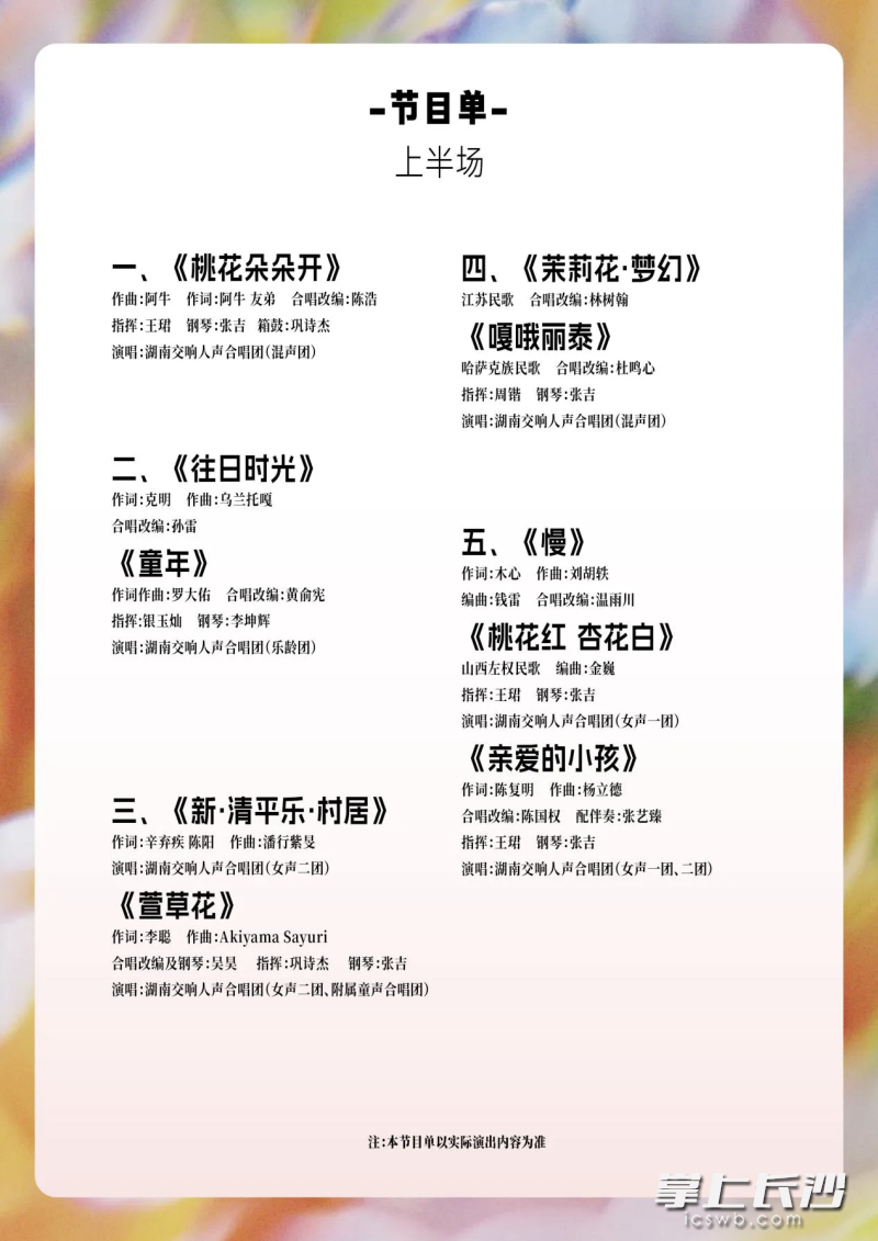 当《梨花又开放》的乡愁遇见《萱草花》的温情,当《绒花》的芬芳与《桃花朵朵开》的欢快交织,这场以花为名的音乐会,承诺将在寒冬的长沙夜,为所有观众的心中播撒下第一缕温暖的春意。