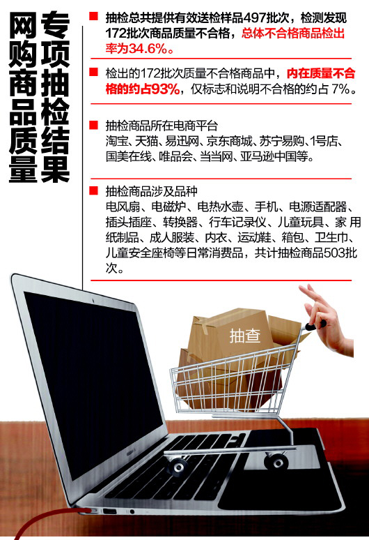 长沙晚报掌上长沙10月11日讯 本报综合 10月8日,国家工商总局公布了网络交易商品质量专项抽检结果。抽检结果显示,总体不合格商品检出率竟达34.6%。