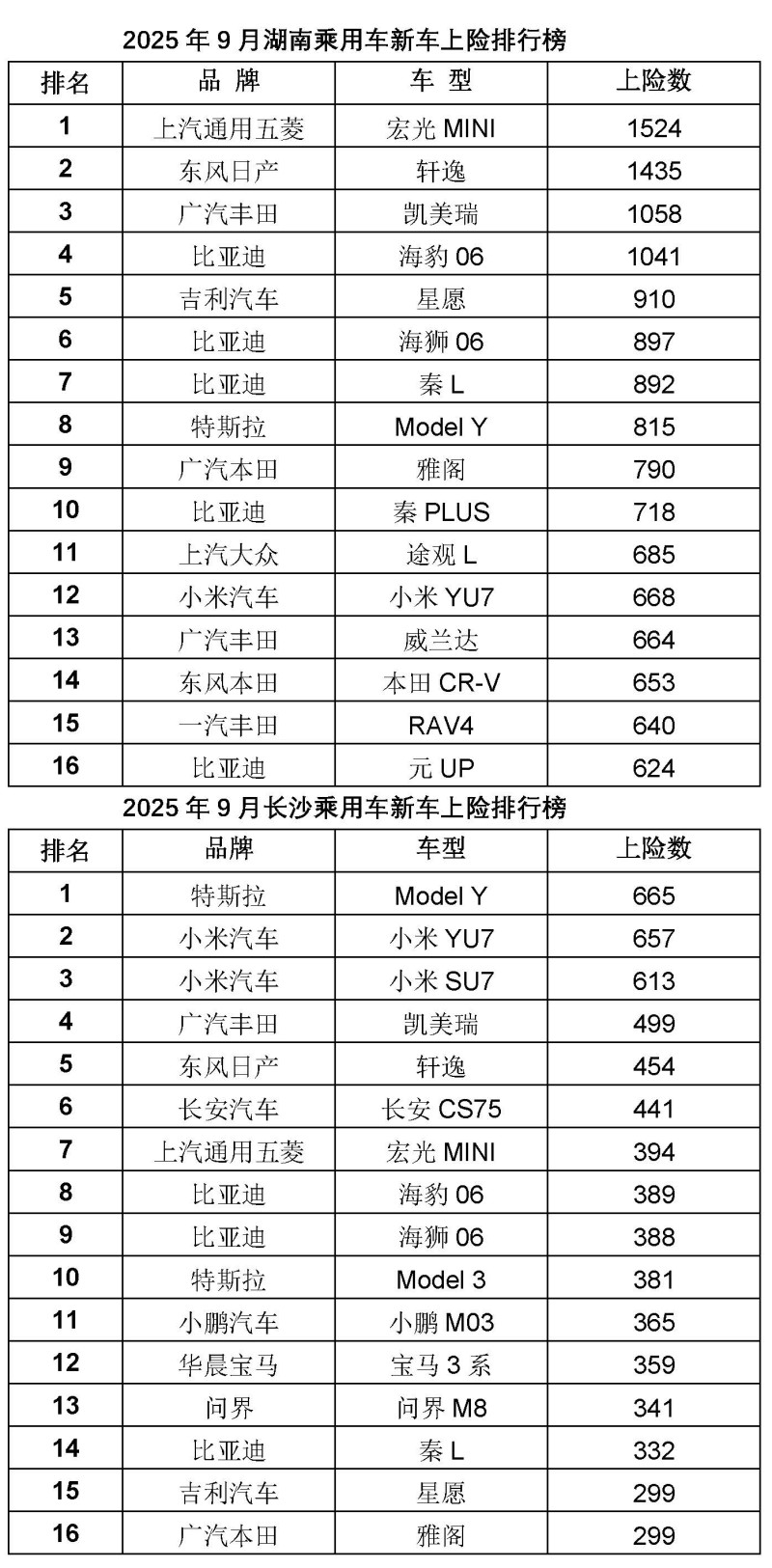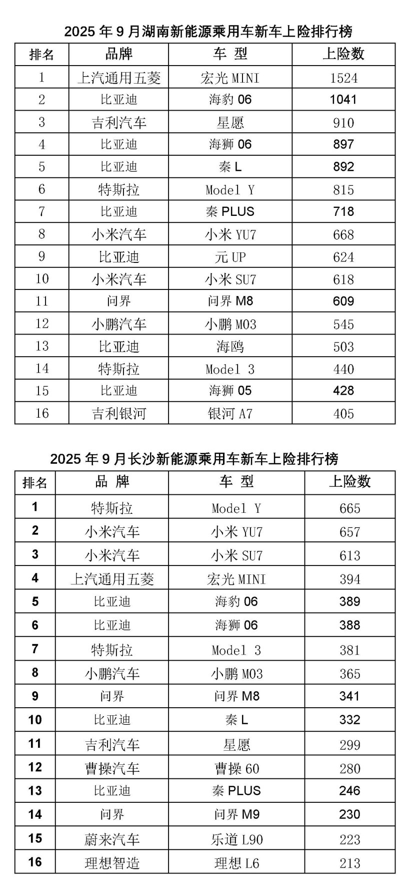 回暖明显,9月湖南新能源乘用车新车上险排行榜发布