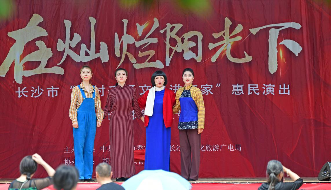 “灯火里的中国,青春婀娜;灯火里的中国,胸怀辽阔;灯火漫卷的万里山河,初心换回了百年承诺……”5月2日上午,在苍坊旅游区(胡耀邦故里)游客中心前坪,由中共长沙市委宣传部、长沙市文化旅游广电局主办,长沙歌舞剧院、胡耀邦故里管理局联合承办的“在灿烂阳光下”长沙市“百村千场文化进万家”惠民演出正式上演,引来众多游客驻足观看,让景区洋溢着浓浓的节日气氛。五一假期,市属文艺院团共组织“百村千场文化进万家”惠民演出20场。