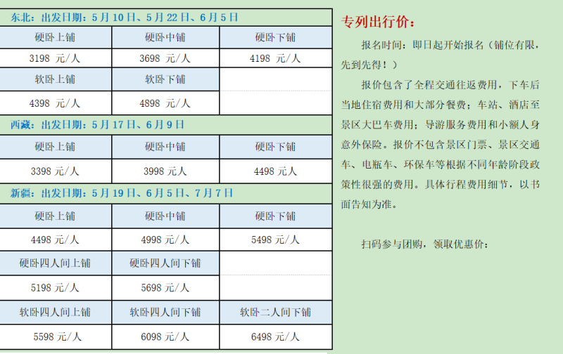 团购价最高优惠800元!东北、新疆、西藏10趟旅游专列火热报名中