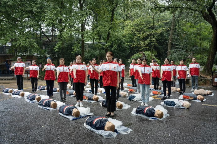 市红十字会党组书记、专职副会长欧阳正松、岳麓山风景名胜区管理局局长胡佳、麓山景区管理处主任彭志浩,以及60名市红十字救护师志愿者、景区工作人员出席活动。