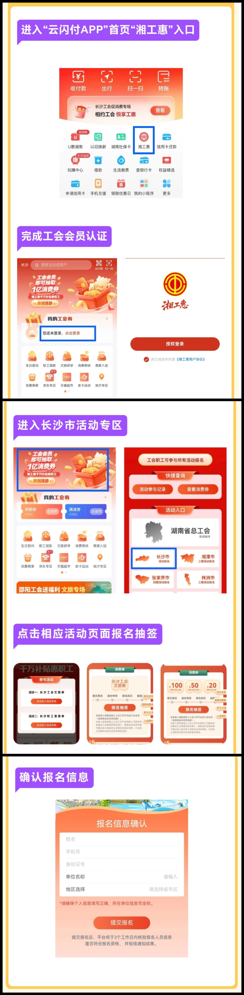 第二期活动采用“先报名再抽签”的形式,长沙工会会员可登录“云闪付”APP—“湘工惠”小程序报名参与。