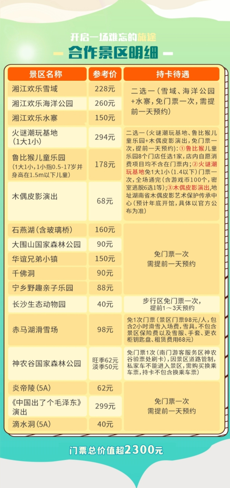 工会文旅券:仅需支付0.01元核验会员身份,即可兑换“长沙工会文旅卡”,畅玩湘江欢乐城海洋公园、长沙生态动物园、宁乡野趣乐园、鲁比猴等总价值超2300元的热门景点。文旅卡激活后365日内有效,您可以慢慢丈量长沙及周边的每一寸美好。