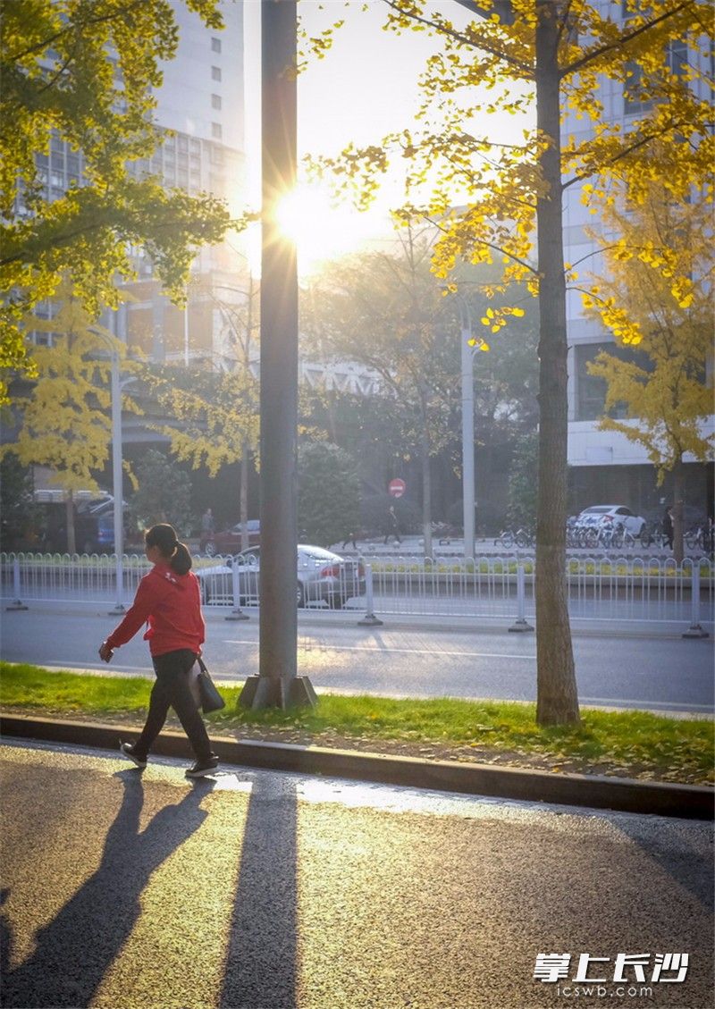 长沙晚报掌上长沙11月30日讯(记者 邹麟)受冷空气影响,今年低温天气来得比较早,近日,长沙各大公园已是色彩斑斓,芙蓉中路上道路两旁金灿灿的银杏在阳光的照射下显得格外美丽,走在路上仿佛进入了一条金色大道,市民们在路旁不停的拍照,记录美好,也成为了一道最美的风景线。