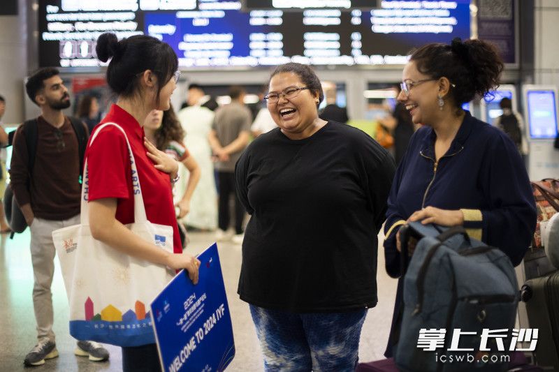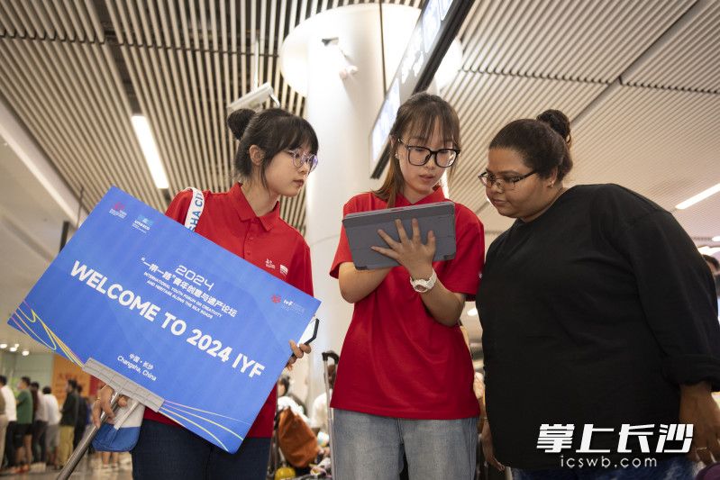 长沙晚报掌上长沙9月22日讯(全媒体记者 黄启晴 摄影报道)“你好,长沙!”9月21日23时30分,十余名参加2024“一带一路”青年创意与遗产论坛的青年代表们抵达长沙黄花机场。刚下飞机,就有青年代表就和志愿者学起了中文,并相互认识起来。据悉,2024“一带一路”青年创意与遗产论坛将在9月22日至28日先后在长沙、南京举办。来自一带一路沿线国家的青年代表们将在长沙开展为期5天的汇聚思想、分享创意和交流创新活动。