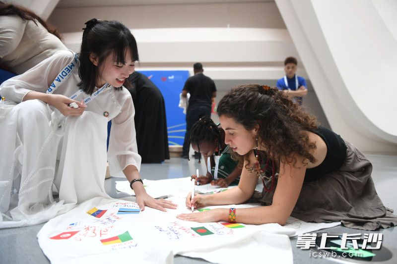 此次2024“一带一路”青年创意与遗产论坛将在长沙和南京先后举行,共有来自中国、马来西亚、乌兹别克斯坦、越南、泰国、印度尼西亚、巴西等“一带一路”沿线54个国家的青年代表参与。在活动中,青年代表们通过制作文化衫,面对面自我介绍等环节热烈交流,传递友谊,气氛活跃。