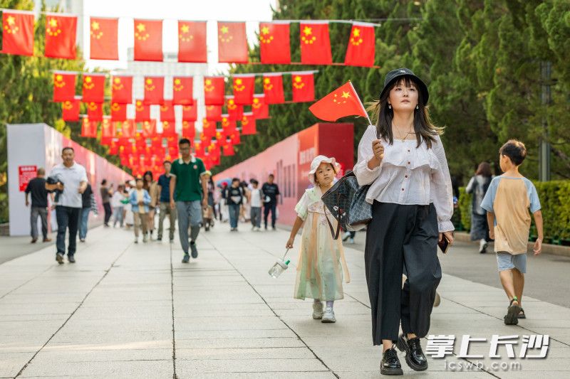 长沙晚报掌上长沙10月6日讯(全媒体记者 董阳)国庆节期间,湖南烈士公园装饰一新,满满的“中国红”元素布满园区主步道。许多市民和游客慕名在这里感受节日的喜悦。记者看到,有许多家长选择来此教育下一代。家长带着孩子漫步在一望无际的“中国红”中,现场有许多孩子手拿国旗、系着红领巾,在烈士塔前向先烈致敬。