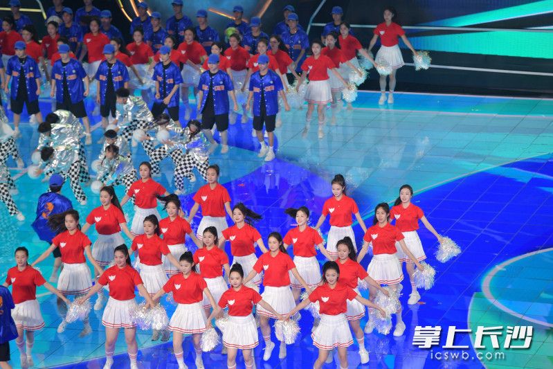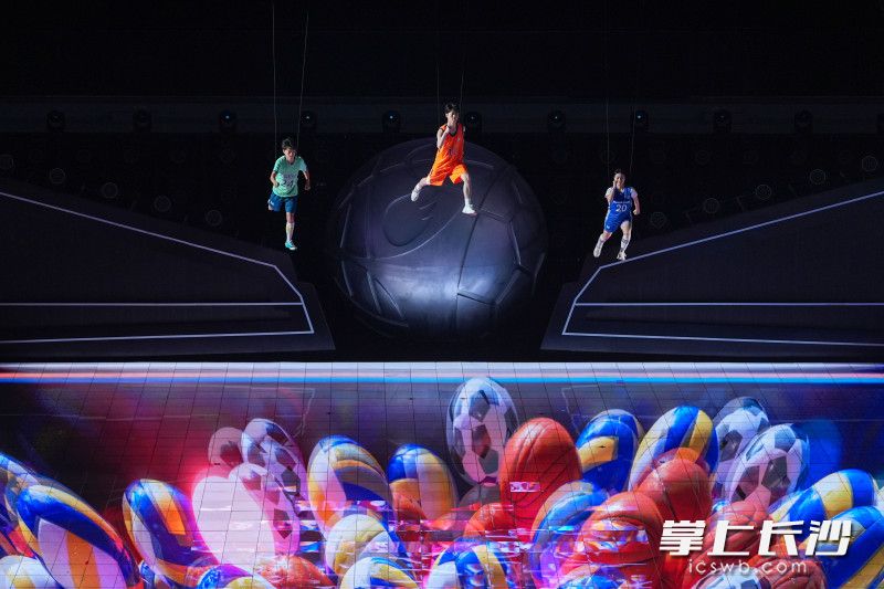 开幕式以参加三大球运动会的青少年运动员为主角,以足篮排三大球为主题,为广大青少年群体打造一场独有的三大球主题嘉年华。祼眼3D、虚拟技术、动力球……开幕仪式和文艺展演中融入了大量的科技元素,呈现出一场“仪式感、科技感、热血感”拉满的青春盛会。