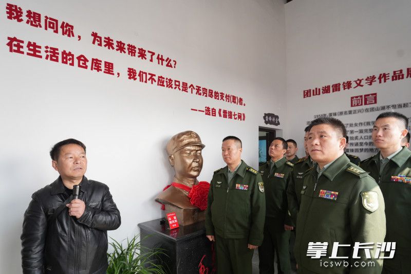 在雷锋展室,一幅幅记录雷锋读书时期的珍贵照片映入眼帘。官兵们伫立凝视,聆听着雷锋学校学生们声情并茂地讲述雷锋故事,仿若穿越时空,真切地触摸到雷锋读书岁月里的那些生动片段。而在望城区乌山街道团山湖村,官兵们深入实地走访,在倾听中,雷锋当年在此地开拖拉机开垦土地,修建沩水工程的点点滴滴徐徐展开。这片孕育雷锋精神的土地,处处留存着雷锋平凡却伟大的鲜活事迹,令官兵们感慨万千。