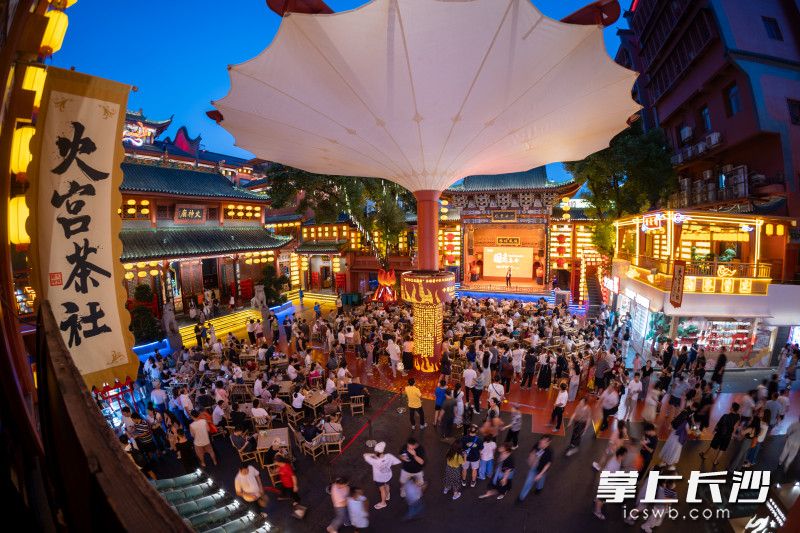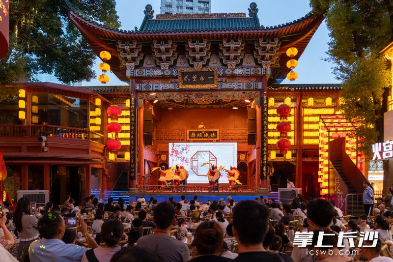 夜幕降临,火宫殿中秋庙会现场热闹非凡。
