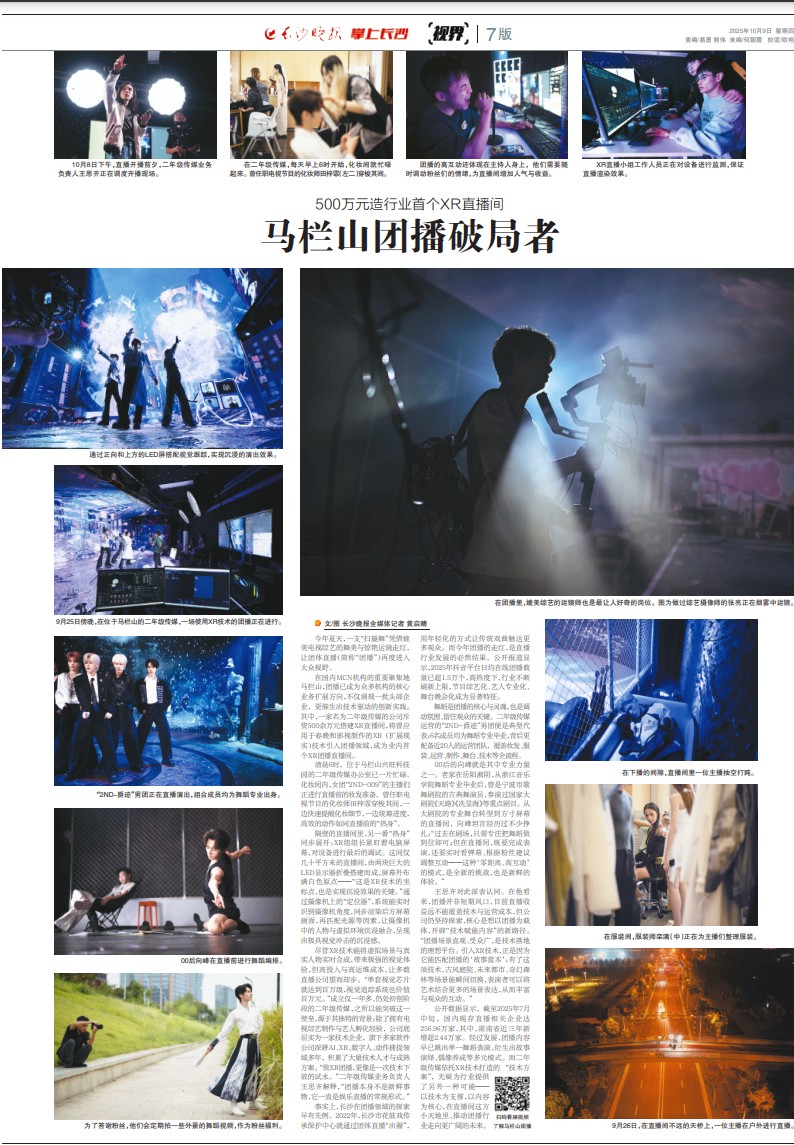 在国内MCN机构的重要聚集地马栏山,团播已成为众多机构的核心业务扩展方向,不仅涌现一批头部企业,更催生出技术驱动的创新实践。其中,一家名为二年级传媒的公司斥资500余万元搭建XR直播间,将曾应用于春晚和影视制作的XR(扩展现实)技术引入团播领域,成为业内首个XR团播直播间。